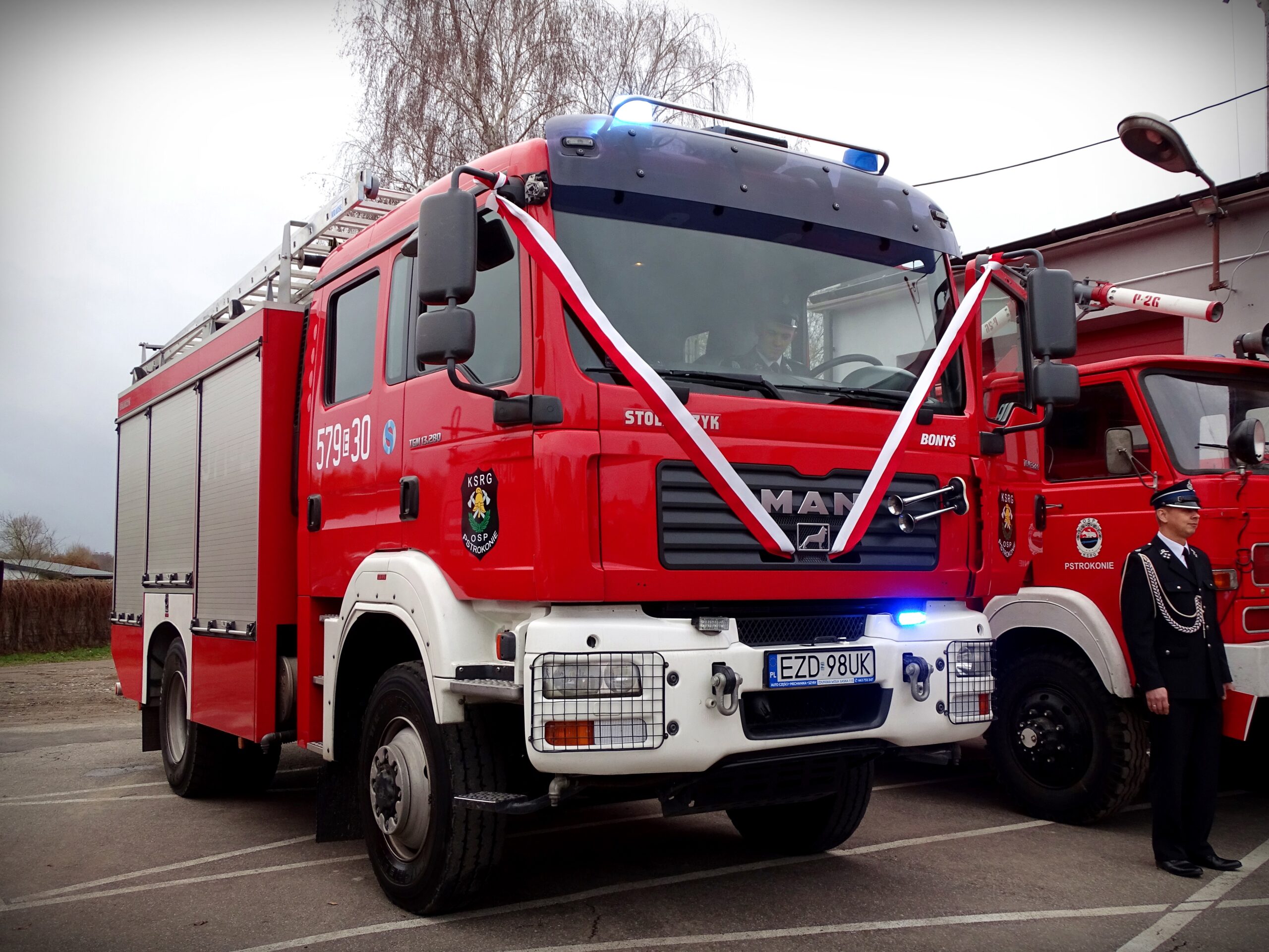 GOKiS Zapolice Uroczystość przekazania wozu strażackiego OSP Pstrokonie (20 listopada 2021)